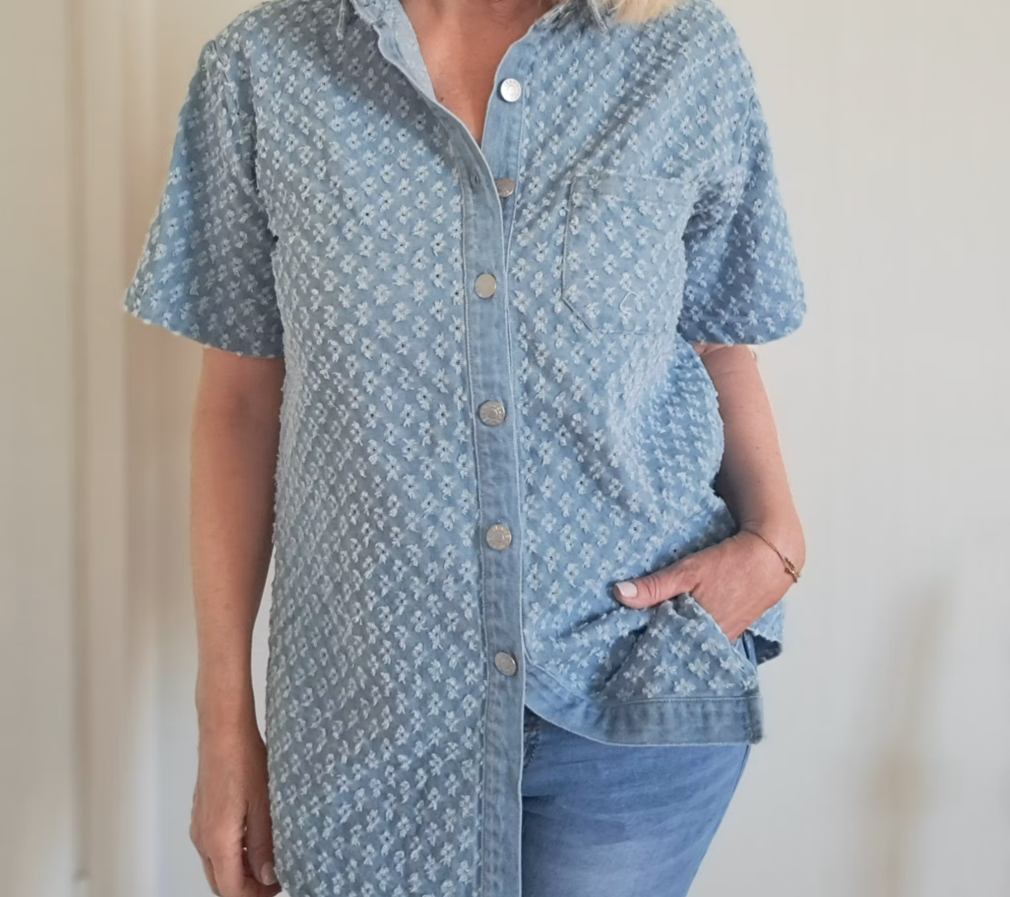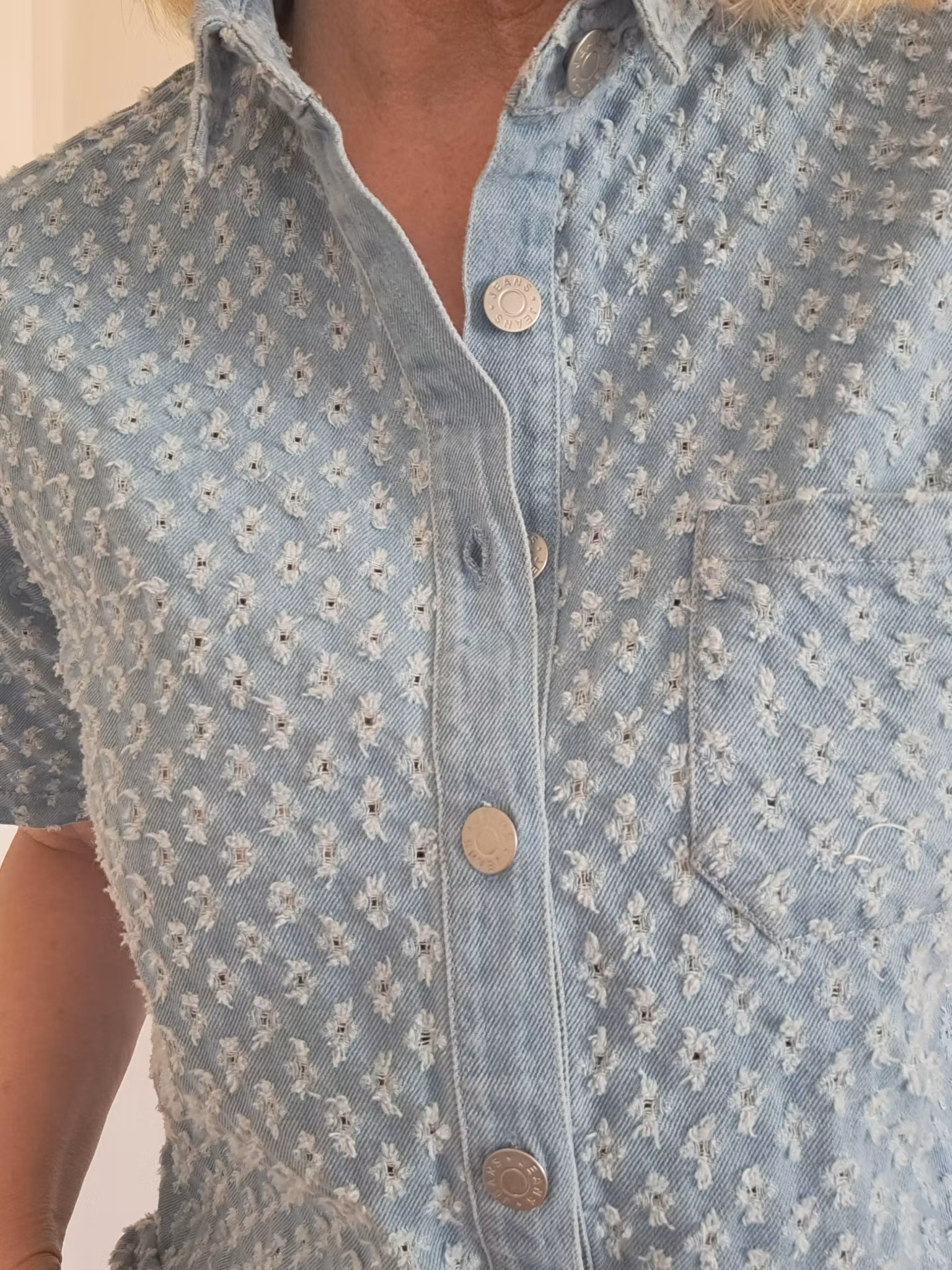 Jeansskjorta med hålmönster.
