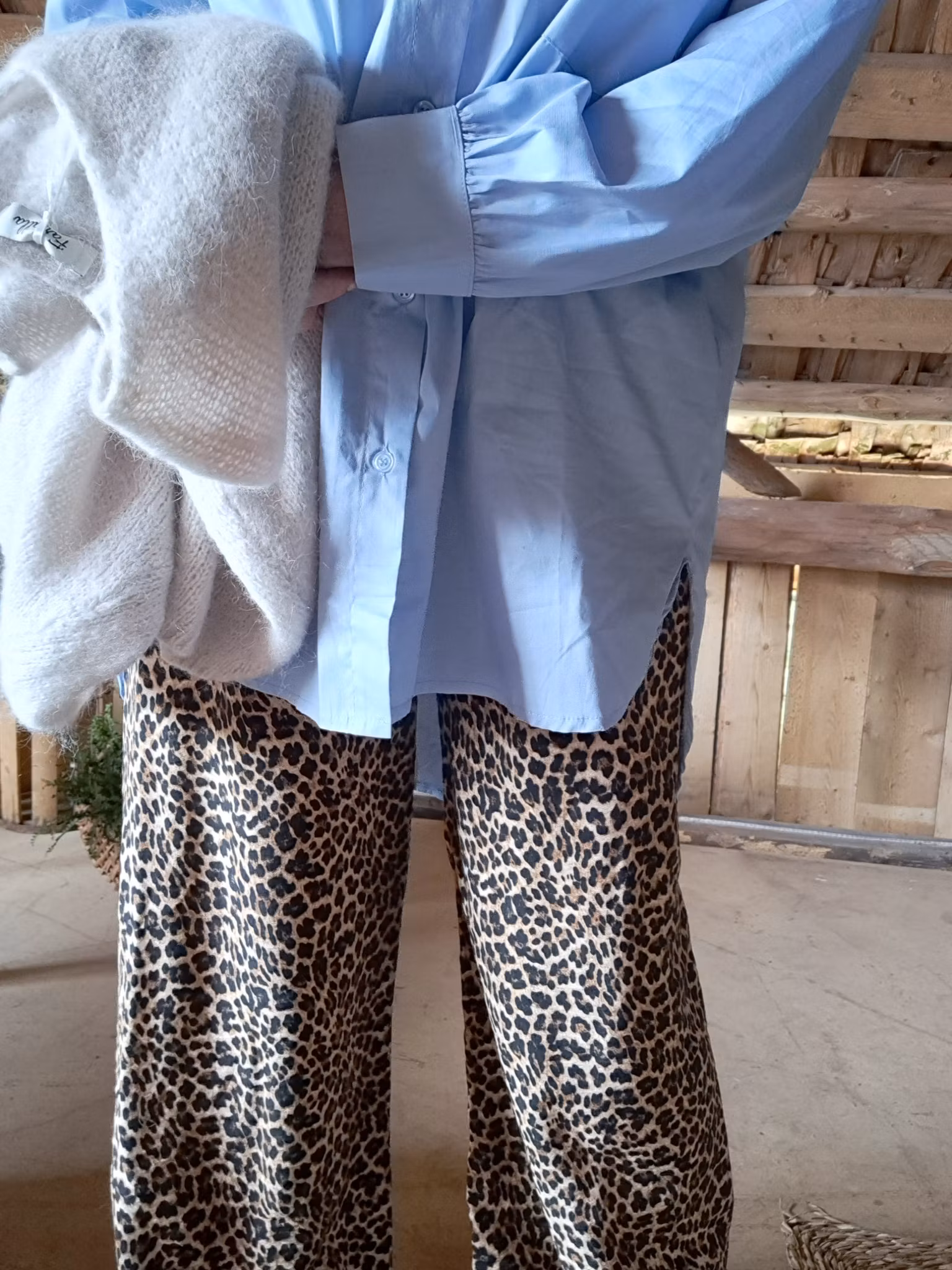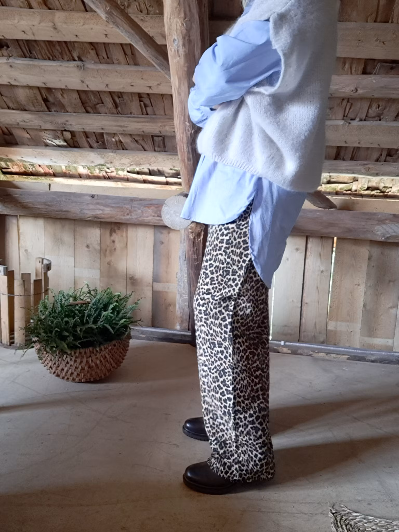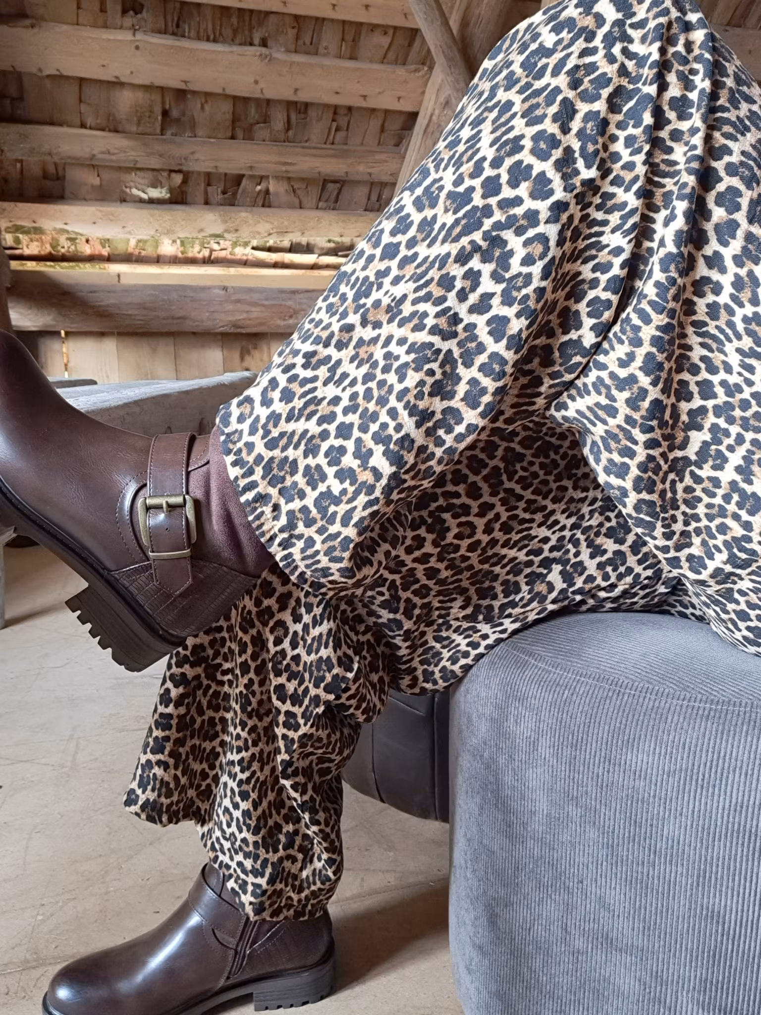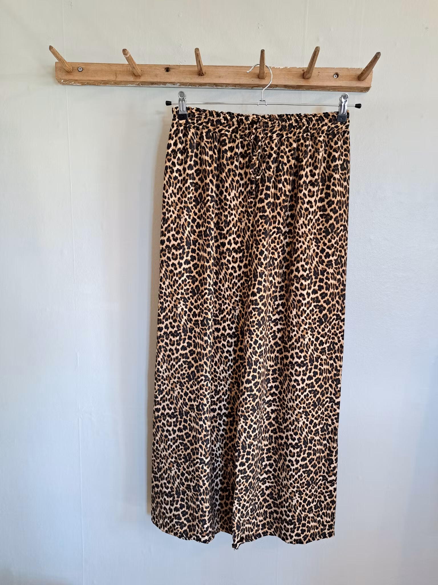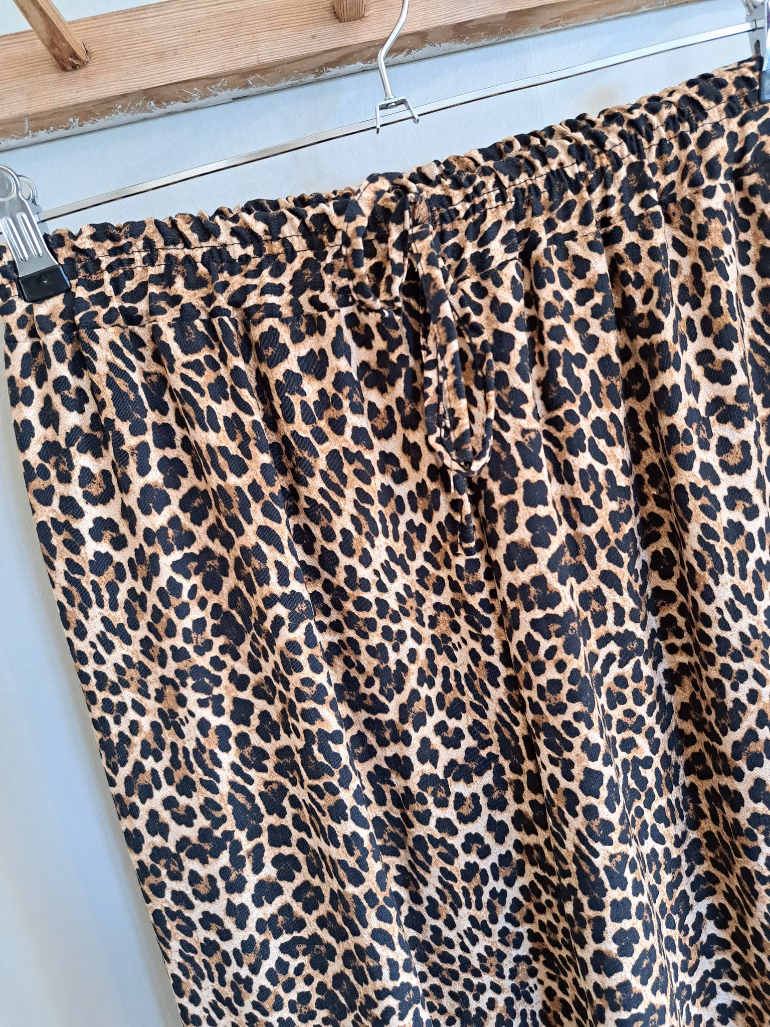 Skön byxa i en vid modell. Resår i midjan, dekorativt knytband.