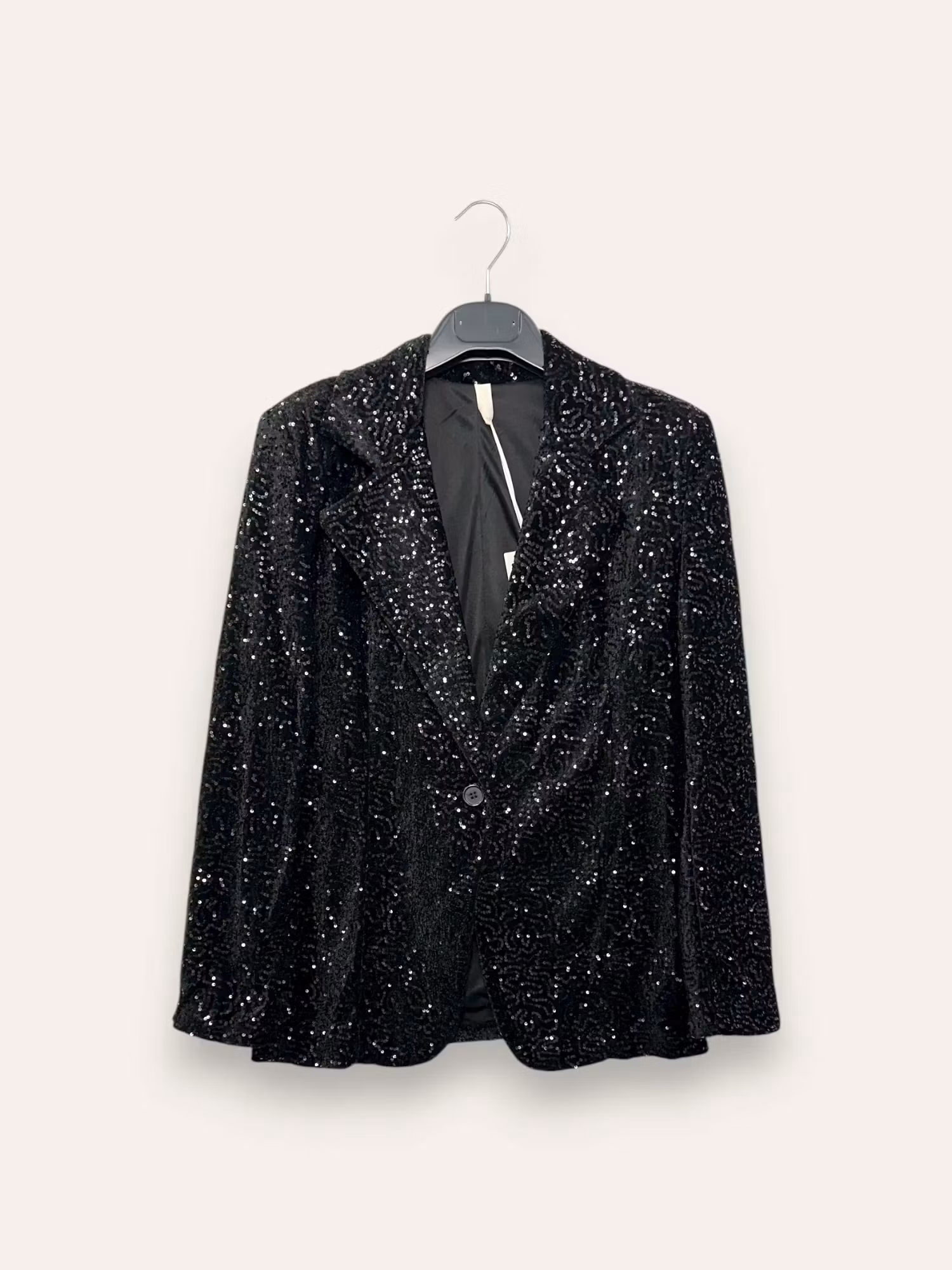 Fodrad kavaj med blingpaljetter och axelvaddar.
