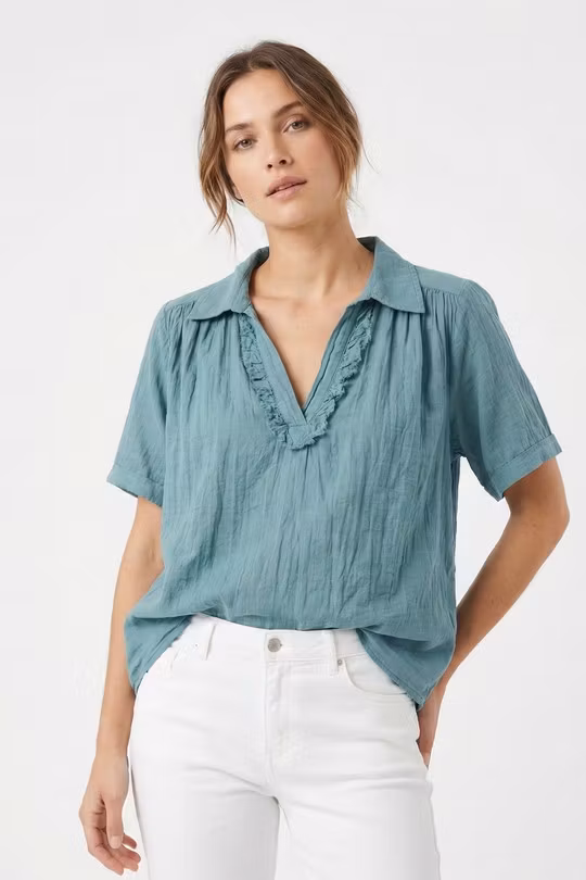 Tunnare blus med fina detaljer i bomull i en rymlig modell.