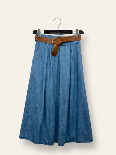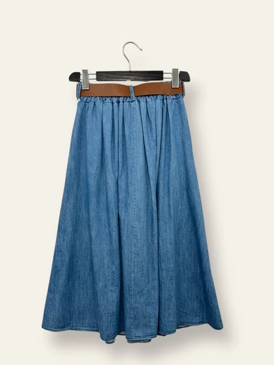 Lite längre kjol i en mjukare Denim, resår, baktill och lagda fram till fickor på sidan.
