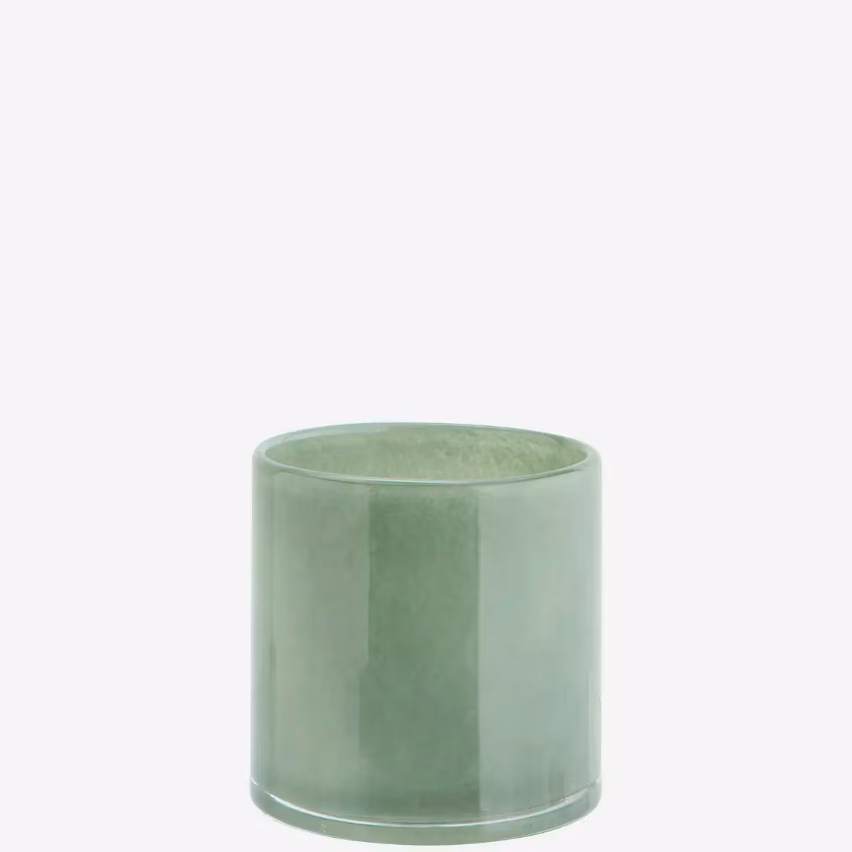 Vacker ljuslykta eller använd som kruka, vas i en fin grön ton.