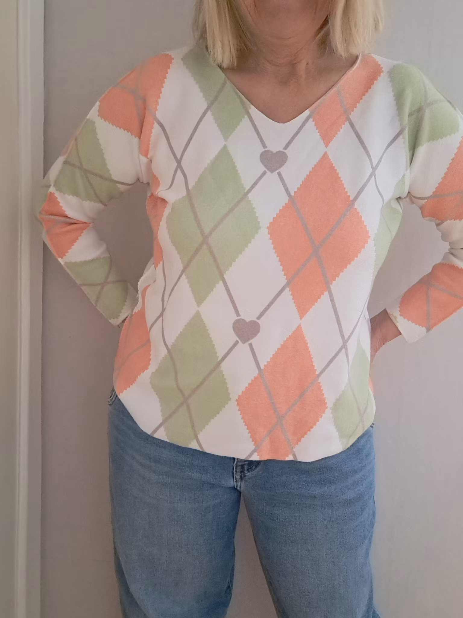 Tunnstickad top med v-ringning.
